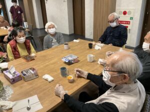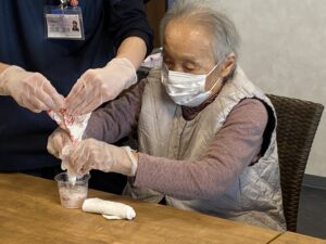 イベント バレンタインデー💛 2026.02.19 Tweet Share Hatena Pocket RSS feedly Pin it この記事のタイトルとURLをコピーする 2月の行事② バレンタインデー💛 入居者さまとデザート作りをしました😊 フルーチェの上に みなさんの大好きな生クリームをのせます❣ たのしいな~ 生クリームの上に フルーツをのせて完成~💛 完成~ おいし~😋 おいしそうでしょ❣ 冷たくて甘くておいしいわ💛 この記事のタイトルとURLをコピーする フラワーアレンジメント 前の記事 集団体操 次の記事
