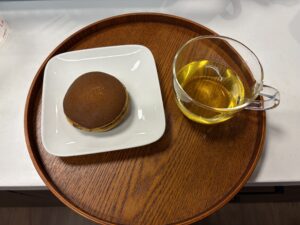 池田菓子店のどら焼きと日本茶で
